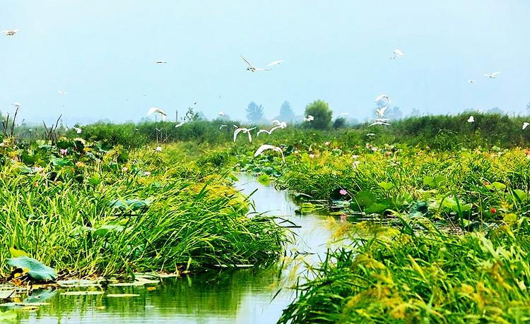 包湖濕地生態(tài)美 白鷺成群翩翩飛