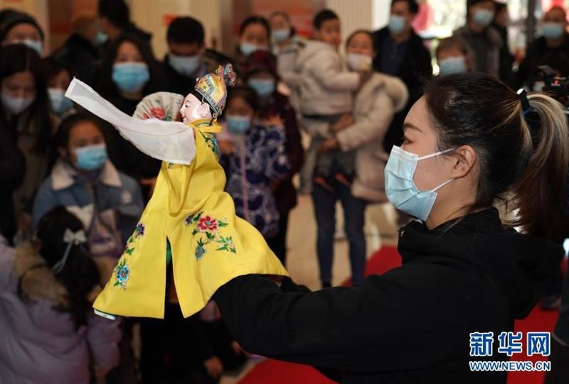 1月30日,市民在海上年俗風(fēng)情展上觀看木偶戲表演。新華社記者 任瓏 攝