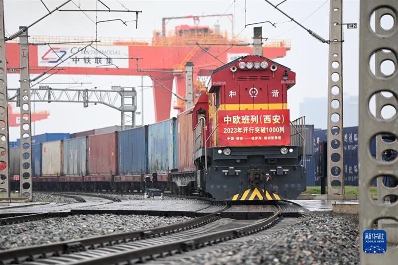 3月23日,X8489次中歐班列從西安國際港站駛出開往俄羅斯謝利亞季諾。新華社記者 李一博 攝