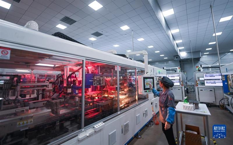 4月11日,在位于浙江省湖州市吳興區(qū)織里鎮(zhèn)的浙江貝盛綠能科技有限公司的車間內(nèi),自動(dòng)化流水線在加緊生產(chǎn)出口歐洲的光伏組件。新華社記者 徐昱 攝