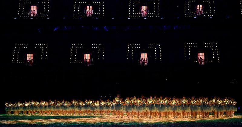 歌聲高潮處,觀眾席中近百扇“幸福之門(mén)”同時(shí)開(kāi)啟。全場(chǎng)萬(wàn)人合唱,現(xiàn)場(chǎng)每一名觀眾都成為開(kāi)幕式“主角”,傳達(dá)“亞洲一家攜手同行”的美好愿望。