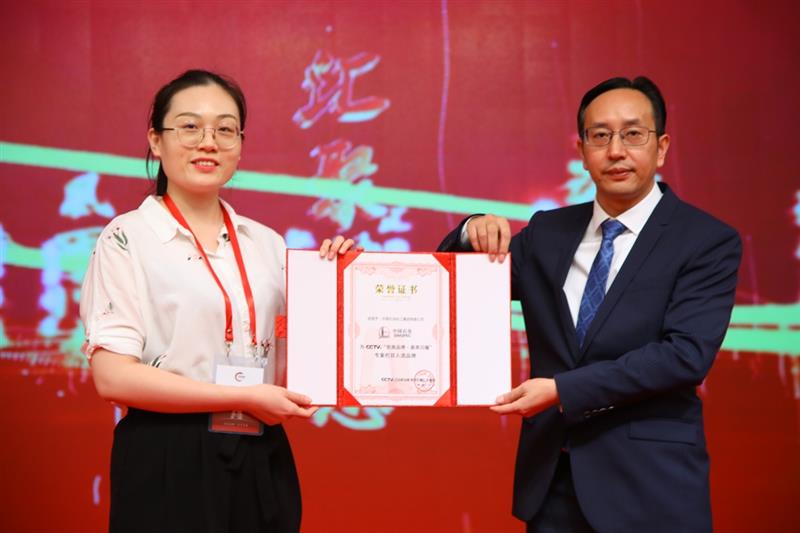 CCTV《民族品牌·薈萃閃耀》專案制片人丁庸為中石化黨委宣傳部代表李博文女士頒發(fā)證書