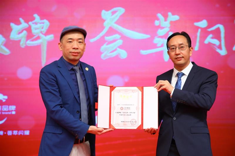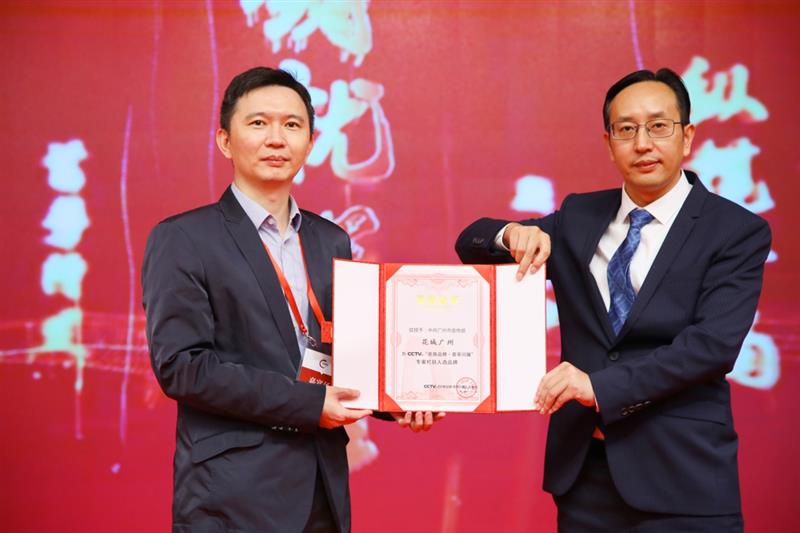 CCTV《民族品牌·薈萃閃耀》專案制片人丁庸為廣州市委宣傳部代表伍慶先生頒發(fā)證書