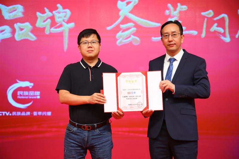 CCTV《民族品牌·薈萃閃耀》專案制片人丁庸為日豐集團(tuán)副總裁鄭立賢先生頒發(fā)證書