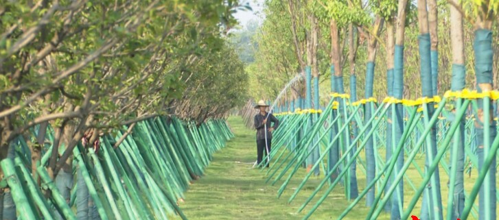 近日,在長江湖北省嘉魚縣神州堤段,一排排新植樹木整齊劃一。這是長江岸線生態(tài)修復(fù)的一個(gè)場景。