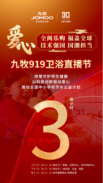 全閩樂購(gòu),福蓋全球。9月19日,九牧將在總部泉州隆重舉辦主題為“技術(shù)強(qiáng)國(guó),國(guó)潮擔(dān)當(dāng)”的衛(wèi)浴直播節(jié),通過打造最有愛的科技衛(wèi)浴直播,構(gòu)筑美好數(shù)字生活,在海上絲綢之路的起點(diǎn)再掀“智造風(fēng)”、“國(guó)潮風(fēng)”與“數(shù)字風(fēng)”,創(chuàng)新驅(qū)動(dòng)產(chǎn)業(yè)升級(jí),引領(lǐng)海西經(jīng)濟(jì)聚勢(shì)發(fā)展。