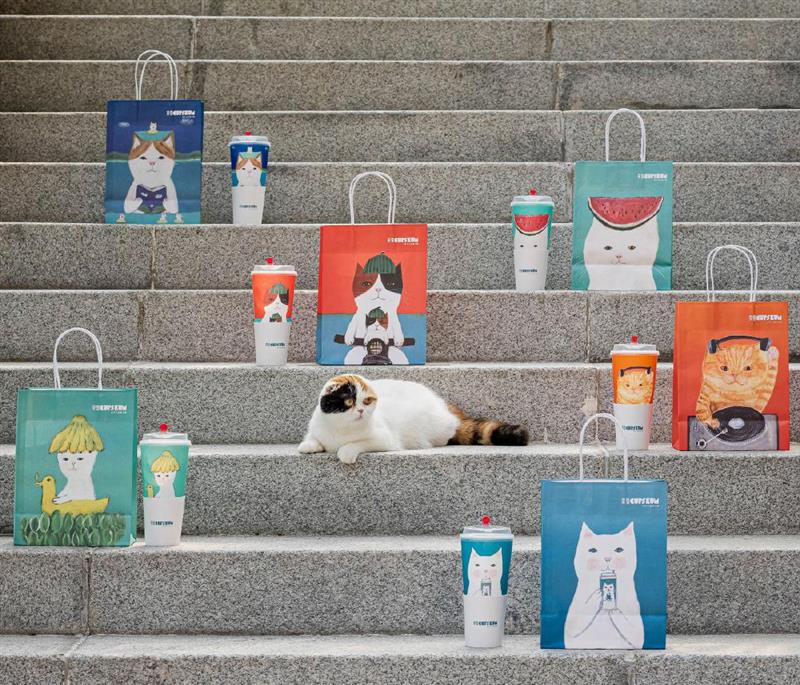 此前,奈雪就推出過3期“CUP美術(shù)館”系列活動(dòng),第一期奈雪請(qǐng)來了日本藝術(shù)家PePeShimada,設(shè)計(jì)了一套憨態(tài)可掬的喵咪杯,六只擬人化的貓咪,攜貓咪杯和磁盤前來,萌化了無(wú)數(shù)鏟屎官的心。