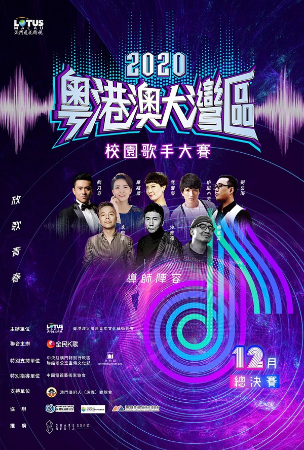 “聲動大灣區(qū),青春再來襲!”新一季的2020“粵港澳大灣區(qū)校園歌手大賽”,于9月21日在線正式啟動。賽事由澳門蓮花衛(wèi)視和粵港澳大灣區(qū)青年文化藝術(shù)協(xié)會主辦,全民K歌聯(lián)合主辦,中國電視藝術(shù)家協(xié)會擔(dān)任特別指導(dǎo)單位,澳門中聯(lián)辦宣文部、澳門特區(qū)政府文化局為特別支持單位,澳門廣府人(珠璣)聯(lián)誼會為支持單位,澳門科技大學(xué)文體發(fā)展辦公室與蓮花國際藝術(shù)交流協(xié)會及澳門新新教育協(xié)辦。