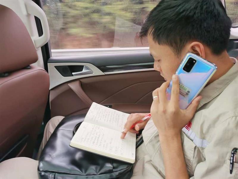 13:40,在車上,我本以為中午沒(méi)有休息的他會(huì)借此機(jī)會(huì)睡一下,但一個(gè)接一個(gè)的電話讓陳本焰根本沒(méi)有思考休息的時(shí)間。
