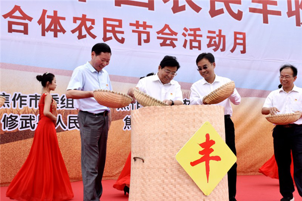 當(dāng)天上午,一曲歡快喜慶的舞蹈《歡天喜地慶豐收》拉開了序幕,歌手袁慶演唱了本屆豐收節(jié)主題歌《我們是農(nóng)民》,贏得陣陣掌聲。焦作在線大活動總監(jiān)張攀,修武縣縣委副書記、縣長魏松,焦作市政府副市長武磊先后致辭。武磊在致辭中表示,“今年是決戰(zhàn)決勝脫貧攻堅、全面建成小康社會收官之年,辦好今年的農(nóng)民豐收節(jié),充分展示我市農(nóng)業(yè)農(nóng)村發(fā)展的巨大成就、傳承中華農(nóng)耕文明的無限活力、繪就鄉(xiāng)村全面振興的光明前景,對于克服新冠肺炎疫情影響,提振經(jīng)濟社會發(fā)展信心,具有特殊重要的意義,必將極大地激發(fā)廣大農(nóng)民群眾的積極性、主動性和創(chuàng)造性,更多地釋放農(nóng)業(yè)農(nóng)村發(fā)展的動能和活力,推動全市農(nóng)業(yè)農(nóng)村工作實現(xiàn)更高質(zhì)量發(fā)展。”
