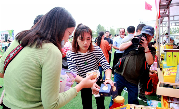 “中國農(nóng)民豐收節(jié)是黨和國家為農(nóng)民群眾設(shè)立的節(jié)日,是黨中央送給廣大農(nóng)民朋友的特殊禮遇,也是舉國上下億萬農(nóng)民共同慶祝豐收的節(jié)日。做為新時代的農(nóng)民,我們一定要抓住機遇,努力學(xué)習(xí)農(nóng)業(yè)科技知識,拓寬思路,大力發(fā)展現(xiàn)代農(nóng)業(yè),充分展示新時代農(nóng)民的新風(fēng)采!”焦作市老農(nóng)民種植專業(yè)合作社負責(zé)人李金才在他的綠色無公害農(nóng)產(chǎn)品展位前笑著說。