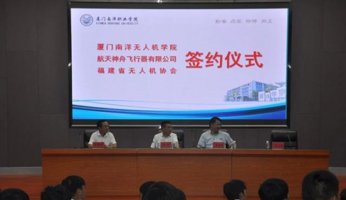 時(shí)下,面對(duì)無(wú)人機(jī)專業(yè)技能人才的短缺,全國(guó)各職業(yè)院校紛紛開設(shè)無(wú)人機(jī)專業(yè),但縱觀職業(yè)院校無(wú)人機(jī)專業(yè)培養(yǎng)現(xiàn)狀可以發(fā)現(xiàn),當(dāng)前的職業(yè)院校無(wú)人機(jī)專業(yè)教育的主要問題有:還沒有形成體系,沒有系統(tǒng)化的教學(xué)標(biāo)準(zhǔn),缺乏師資和專業(yè)教材等等。在此背景下,2016年福建省無(wú)人機(jī)協(xié)會(huì)順應(yīng)國(guó)家人才隊(duì)伍建設(shè)號(hào)召和職業(yè)院校發(fā)展需求,就職業(yè)院校無(wú)人機(jī)專業(yè)教學(xué)課程、標(biāo)準(zhǔn)實(shí)訓(xùn)體系設(shè)置,教材選用人才培養(yǎng)方案,師資培養(yǎng),實(shí)訓(xùn)室整體建設(shè),運(yùn)行與安全管理程序等方面與廈門南洋學(xué)院達(dá)成戰(zhàn)略合作,經(jīng)福建省教育廳備案,共同建立福建省首家無(wú)人機(jī)學(xué)院。