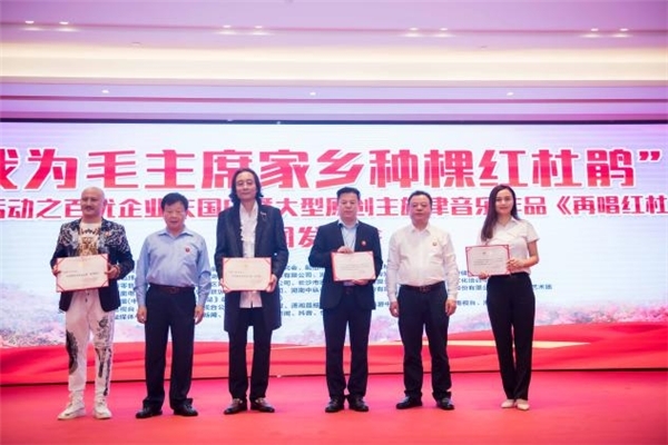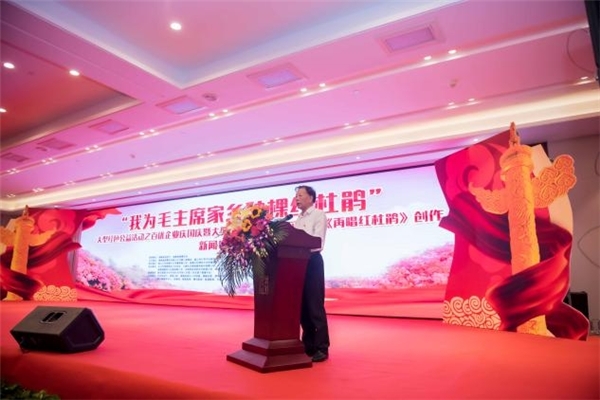 2021年是中國共產(chǎn)黨誕辰100周年,為歌頌新時(shí)代兩個(gè)100年的中國夢,為更好地推動(dòng)“我為毛主席家鄉(xiāng)種棵紅杜鵑”大型紅色公益活動(dòng),感恩并緬懷偉大領(lǐng)袖毛主席,為建黨100周年獻(xiàn)禮。經(jīng)韶山紅杜鵑認(rèn)種組委會精心策劃,特邀著名音樂人、作曲家耿志杰作曲,周中華、袁茂林作詞,創(chuàng)作了大型原創(chuàng)主旋律音樂作品《再唱紅杜鵑》,創(chuàng)作新聞發(fā)布會在湖南省委蓉園舉行。
