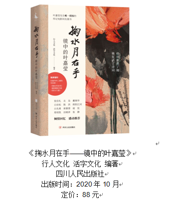 10月16日,由陳傳興導(dǎo)演的傳記電影《掬水月在手》全國公映,行人文化和活字文化編著的同名圖書《掬水月在手——鏡中的葉嘉瑩》由四川人民出版社全國出版發(fā)行。電影和圖書聯(lián)手,以跨媒體的方式將古典詩詞大師葉嘉瑩先生曲折跌宕的一生呈現(xiàn)在全國人民面前。藉由葉嘉瑩先生的解讀,中國最美古詩詞煥發(fā)全新的光彩。