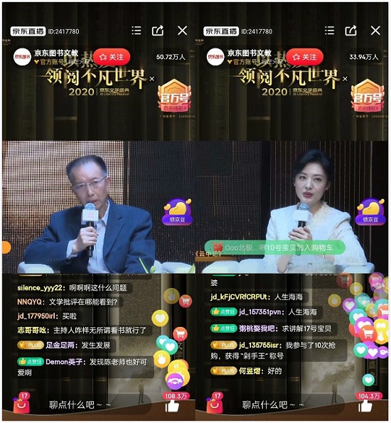 兩個(gè)小時(shí)的直播活動(dòng)中,嘉賓們除了推介優(yōu)秀文學(xué)作品,還回答了眾多讀者和網(wǎng)友關(guān)注的問題,如,如果回到20歲你會(huì)給自己什么閱讀建議?讀屏?xí)r代如何處理淺閱讀與深閱讀?五位嘉賓圍繞這些話題熱烈討論,不斷碰撞出智慧的火花。當(dāng)晚在京東直播間與新華云直播內(nèi),有近500萬人次在線觀看。觀看人次,分別創(chuàng)下京東直播和新華云直播同類直播活動(dòng)新高!