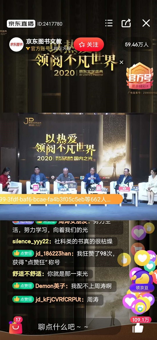 打開閱讀之門 京東文學(xué)盛典首場直播觀看人次破記錄