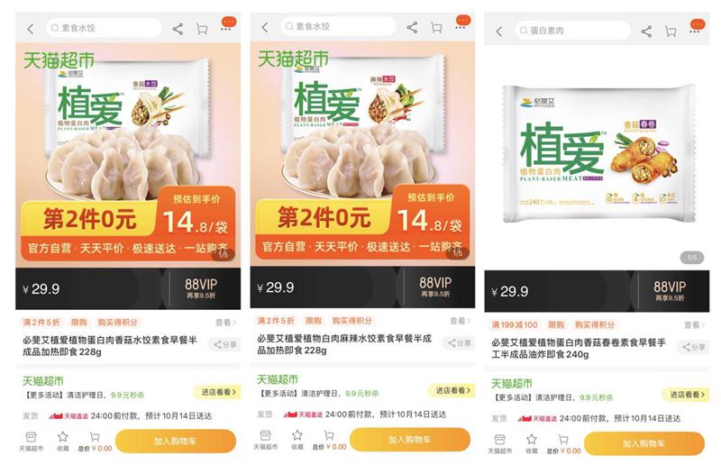 植愛植物蛋白肉入駐天貓超市和京東自營,植物肉食品最快實現(xiàn)“當日達”