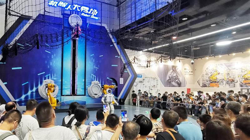 中科館“機(jī)器人大秀場”展廳的人形機(jī)器人秀。鄭雪雄 攝