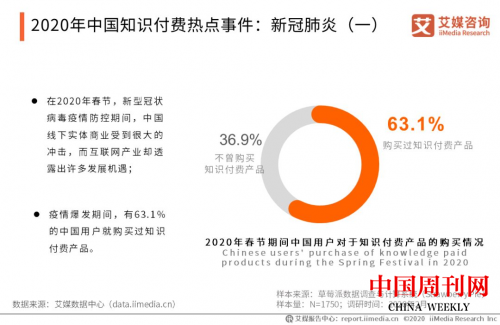 受疫情影響,復(fù)工復(fù)學(xué)時(shí)間推遲,然而“停課/工不停學(xué)”,在取消線下課程的同時(shí),各機(jī)構(gòu)紛紛提供線上課程,預(yù)計(jì)2020年中國在線教育用戶規(guī)模將達(dá)到3.2億。并且,據(jù)統(tǒng)計(jì),僅在年初我國已有63.1%的線上用戶購買了知識(shí)付費(fèi)產(chǎn)品,2019年中國知識(shí)付費(fèi)市場(chǎng)規(guī)模達(dá)到278.0億元,預(yù)計(jì)2020年將突破392億元。
