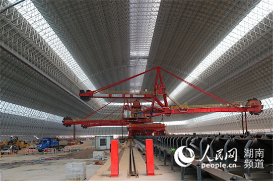 4月25日,湖南岳陽城陵磯港環(huán)保提質(zhì)改造項目主體工程——巨型“膠囊”型全封閉散貨倉庫正式投產(chǎn),倉庫長470米、寬110米,高46.5米,總面積5.1萬平方米,是目前湖南省同類型單跨跨徑最大、最高的網(wǎng)架結(jié)構(gòu)散貨料倉,也是長江流域首個巨型“膠囊”形散貨倉庫,單跨跨度110米,位居全國第二。