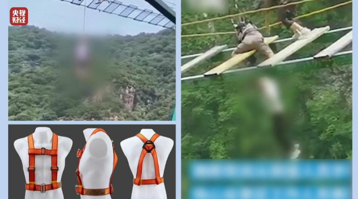 2022年7月22日,天津市薊州區(qū)的九山頂景區(qū),一名游客在“步步驚心”“網(wǎng)紅”吊橋項(xiàng)目游玩時(shí),突然昏迷,懸在半空。救援時(shí),安全帶突然脫落,游客摔下山谷,不幸身亡。