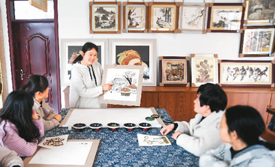 師獻(xiàn)巧的工作室不僅有線下教學(xué)和體驗(yàn),她還通過網(wǎng)絡(luò)直播形式推介糧食畫。 |