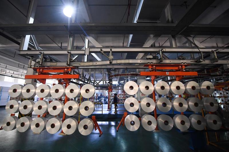 12月22日在位于浙江省湖州市吳興區(qū)東林鎮(zhèn)的新鳳鳴集團(tuán)湖州基地生產(chǎn)車間拍攝的運(yùn)轉(zhuǎn)中的自動(dòng)化生產(chǎn)線。新華社記者 徐昱 攝