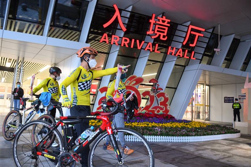2月6日,來自香港的騎行愛好者從蓮塘/香園圍口岸入境深圳。新華社記者 毛思倩 攝