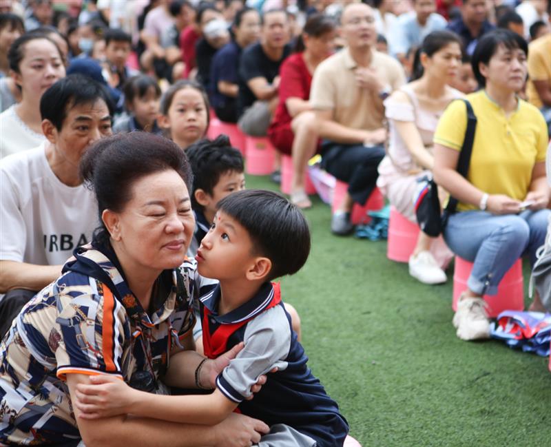 ??谑杏裆硨嶒瀸W(xué)校一年級新生和家長在“開筆禮”儀式活動現(xiàn)場。新華社記者樊雨晴 攝