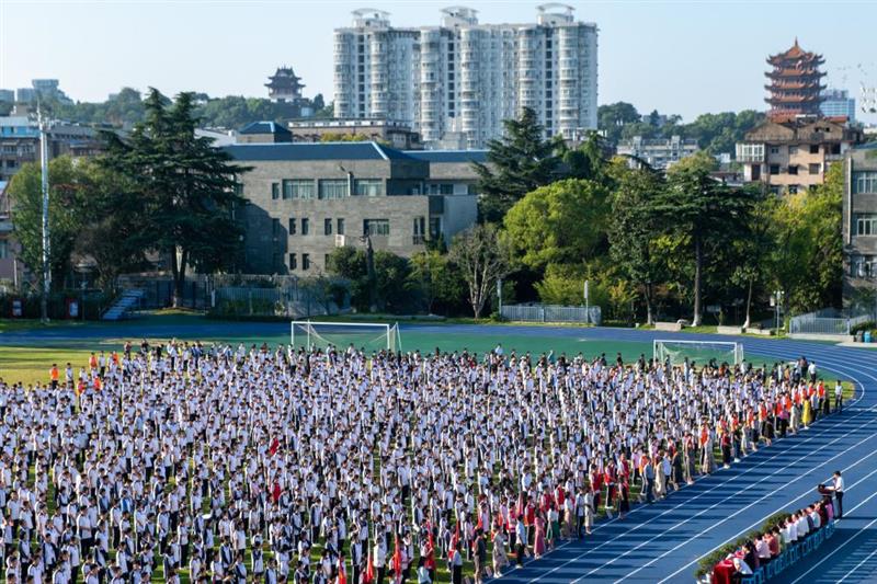 湖北省武昌實驗中學(xué)師生在參加開學(xué)典禮。(杜子璇 攝)