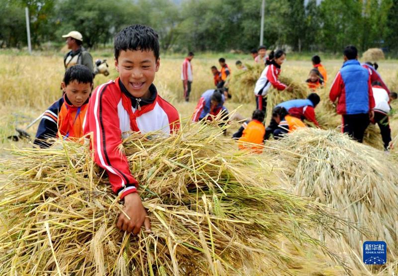 時(shí)下正值青稞成熟的季節(jié),西藏日喀則市上海實(shí)驗(yàn)學(xué)校40余名師生來到日喀則市甲措雄鄉(xiāng),參與當(dāng)?shù)氐那囡崭睿选八颊n”上在青稞地里。學(xué)生們?cè)趯?shí)踐中體會(huì)勞動(dòng)的艱辛,在收獲中感受勞動(dòng)的快樂。