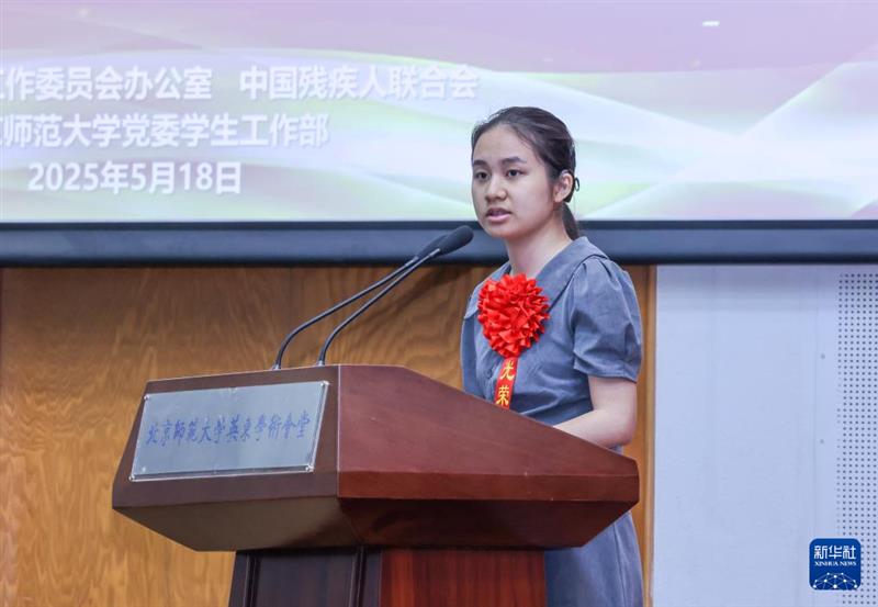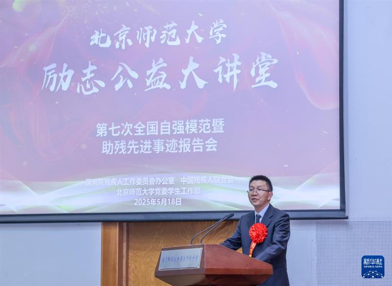 ??5月18日在北京師范大學拍攝的第七次全國自強模范暨助殘先進事跡報告會現(xiàn)場。新華社記者 殷剛 攝