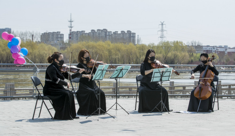 “我看了好幾場(chǎng)演出,你看,我把錄的視頻制作成了美篇,全國各地好多網(wǎng)友給咱長(zhǎng)春點(diǎn)贊?!奔易∫镣ê优系氖忻褛w惠如女士高興地展示著自己的作品。在她的鏡頭里,既有伊通河畔奏響的鋼琴音樂秀,也有以弦樂四重奏、吉他彈唱為主要內(nèi)容的“春之聲”輔助活動(dòng)——“伊通河之戀”,多彩的音樂喚醒了百姓走出家門、迎接春天的渴望。