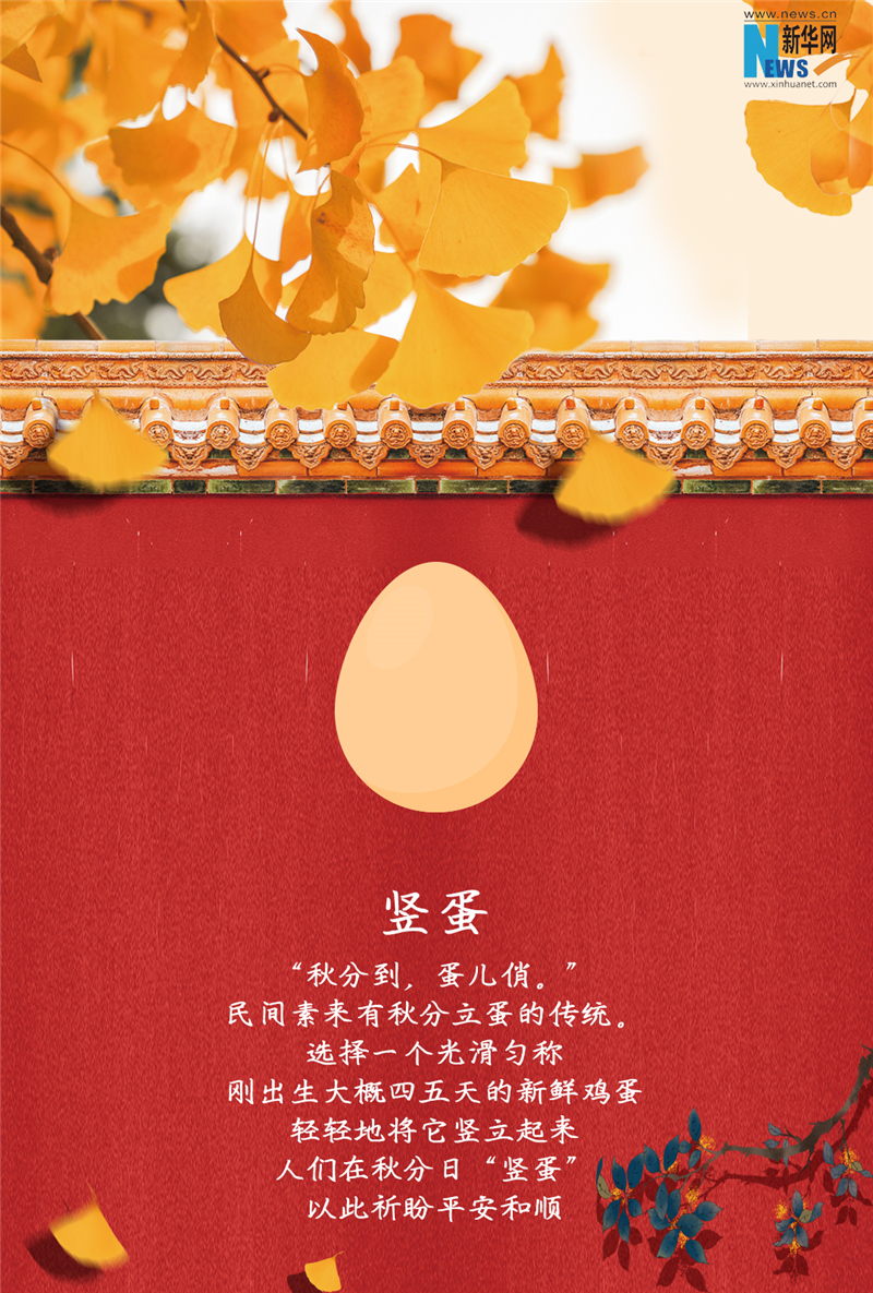 秋分,是二十四節(jié)氣之第十六個節(jié)氣,“分”即為“平分”“半”的意思,除了指晝夜平分外,還有一層意思是平分了秋季,自古也形成了豐富多彩的節(jié)氣習(xí)俗。豎雞蛋、粘雀嘴、拜月、放紙鳶……秋分不僅充滿季節(jié)特征,也充滿著生活情趣。一起看看吧?。嬔┩?劉逸凡)
