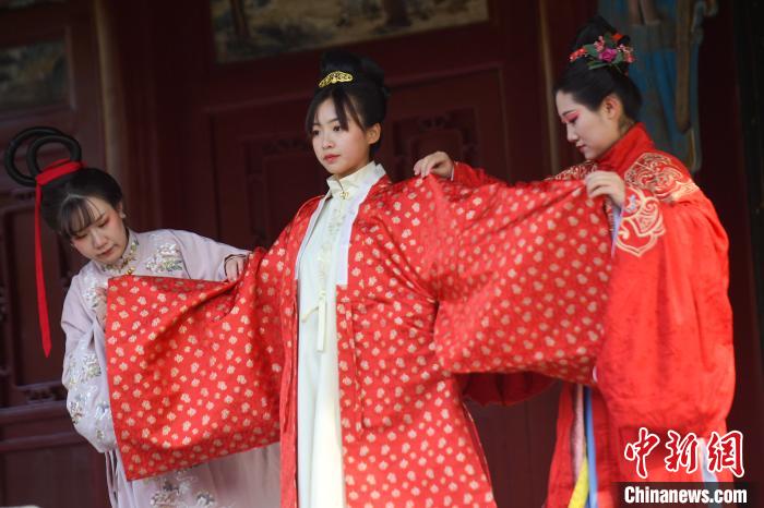漢服愛好者正在表演漢代女子成人禮?!∥淇〗?攝
