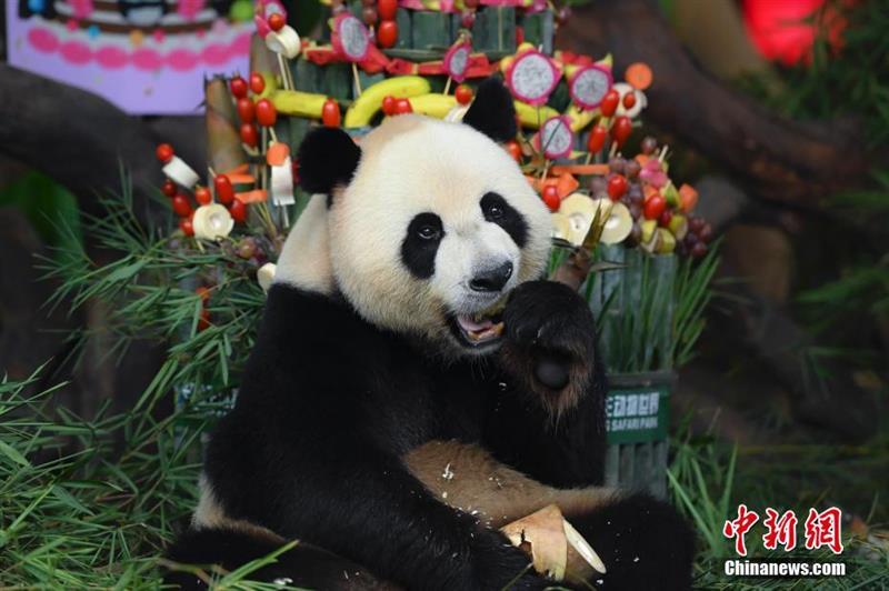 7月29日,在位于廣東省廣州市的長隆野生動物世界內(nèi),三胞胎之一的大熊貓“帥帥”品嘗特制生日蛋糕。當(dāng)日,全球唯一大熊貓三胞胎“萌、帥、酷”迎來6歲生日。