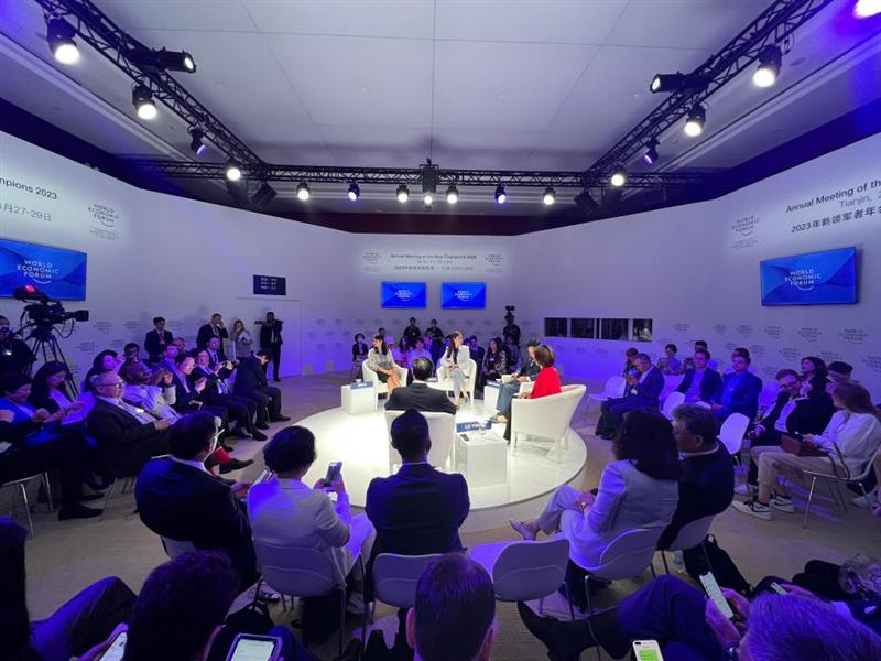 第十四屆夏季達沃斯論壇現場。新華社記者李鑫 攝