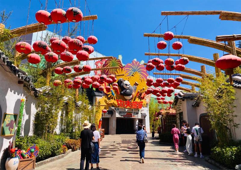 北京環(huán)球度假區(qū)的功夫熊貓蓋世之地主題景區(qū)。新華社記者張漫子攝