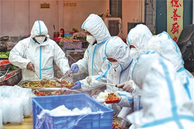 1月3日,西安“德善愛(ài)心共享廚房”的志愿者為抗疫一線(xiàn)的工作人員準(zhǔn)備午飯。 本報(bào)記者 趙晨攝
