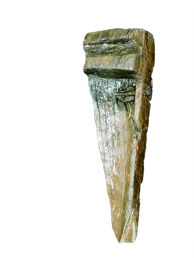 地處浙江省余姚市的井頭山遺址是長三角地區(qū)發(fā)現(xiàn)的第一個(gè)貝丘遺址,也是目前中國發(fā)現(xiàn)最早、埋藏最深的貝丘遺址,被評(píng)為2020年中國十大考古新發(fā)現(xiàn)??脊湃藛T在發(fā)掘時(shí)發(fā)現(xiàn)了兩件帶有人工涂層痕跡的木器,一件是帶銷釘?shù)臍埬酒?,一件是帶黑色表皮的扁圓體木棍。