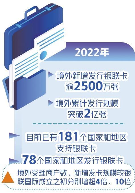銀聯(lián)國(guó)際公布的最新數(shù)據(jù)顯示,2022年,境外新增發(fā)行銀聯(lián)卡逾2500萬(wàn)張,境外...