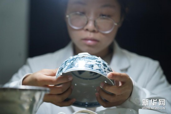 這是在景德鎮(zhèn)御窯博物院修復(fù)部拍攝的一件被修復(fù)的瓷碗(12月2日攝)。新華社記者 周密 攝