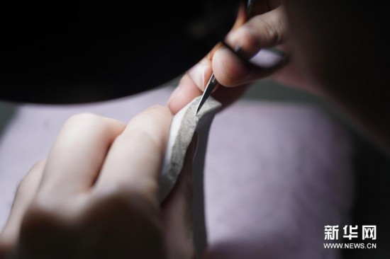 修復(fù)師龔尚開源在工作室清理碎瓷片斷面上的雜質(zhì)(12月2日攝)。新華社記者 周密 攝