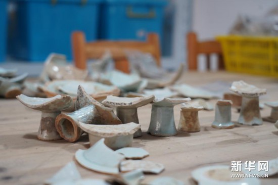這是在御窯博物院修復(fù)部工作室里拍攝的瓷片,瓷片斷面上標(biāo)了詳細(xì)的編號(hào)(12月3日攝)。新華社記者 周密 攝