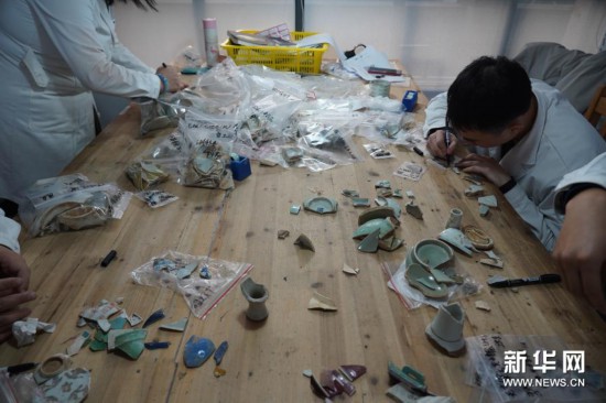 工作人員在御窯博物院修復(fù)部工作室里整理御窯瓷片(12月3日攝)。新華社記者 周密 攝