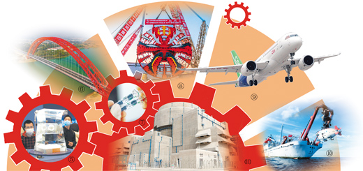 圖⑩:“十三五”時(shí)期,“蛟龍”探海、大飛機(jī)首飛等創(chuàng)新成果競(jìng)相涌現(xiàn)。圖為“蛟龍”號(hào)載人潛水器離開“向陽紅09”科學(xué)考察船準(zhǔn)備進(jìn)入西太平洋,進(jìn)行中國(guó)大洋38航次最后一潛。(2017年6月13日拍攝)