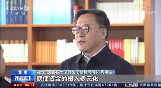 自然資源部國土空間生態(tài)修復司司長 周遠波:改變了原來單一的財政投入的渠道,吸引社會資本來投入生態(tài)修復,使我們資金投資的渠道進一步拓展,使我們修復的力量進一步增加,就使資金的投入多元化。