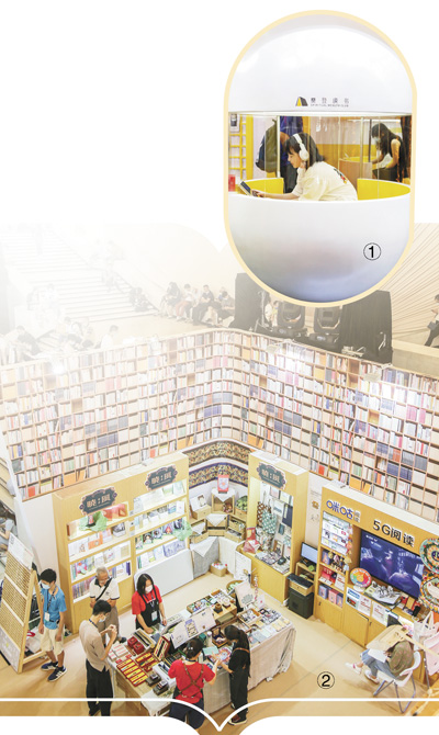 圖①:讀者在上海書展現(xiàn)場體驗“未來自習(xí)室”。 |