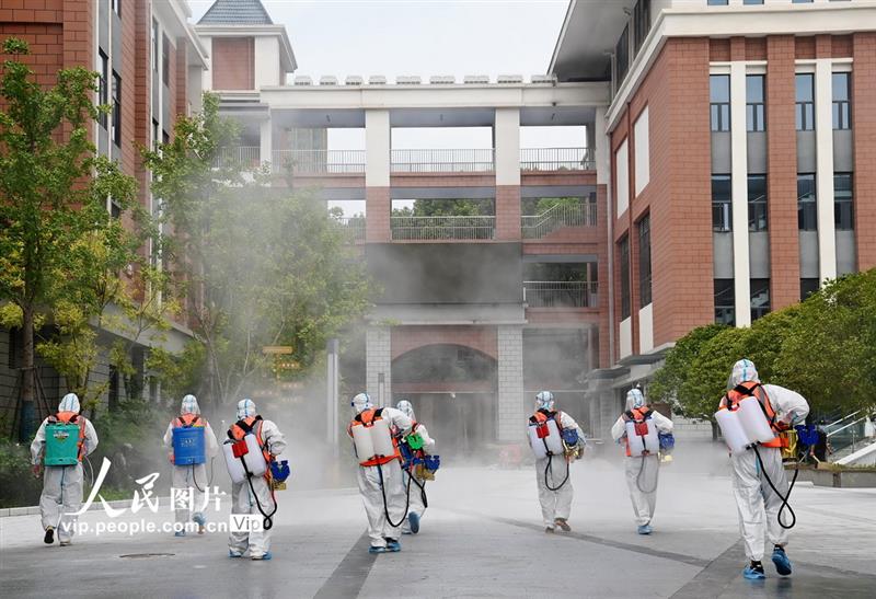 秋季開學在即,四川省華鎣市義務工作者協會及時組織義工連續(xù)對華鎣中學、紅軍小學、清溪路幼兒園等城區(qū)中小學校及幼兒園進行全面消毒殺菌,構筑疫情防控防護網,切實有效保障新學期師生的身體健康與生命安全。邱海鷹攝(人民圖片網)