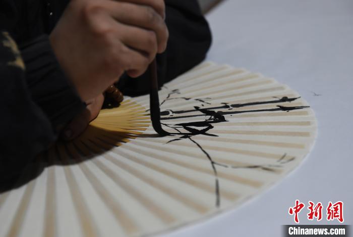 圖為畫師正在為成品榮昌折扇進(jìn)行繪畫修飾。 周毅 攝